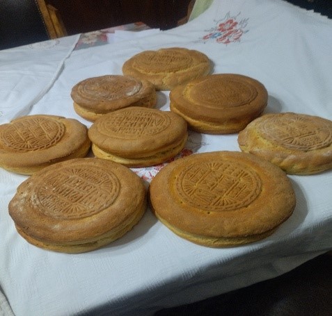Όλα τα παιδιά ζύμωσαν μόνα τους (με μικρή βοήθεια από τους γονείς) το καθένα το πρόσφορό του. Τα πρόσφορα, μαζί με τα ονόματα φίλων και συγγενών, προσκομισαμε στην Λειτουργία της Κυριακής - Κυριακή της Σταυροπροσκυνήσεως (23/3)