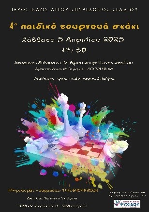 Κυριακή 30 Μαρτίου, 10:30 πμ - «1ο Παιδικό τουρνουά σκάκι»