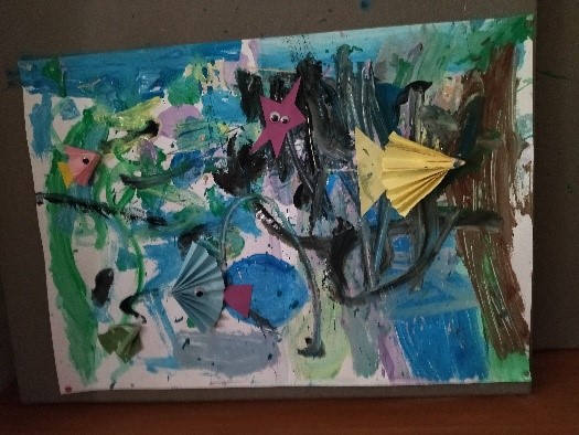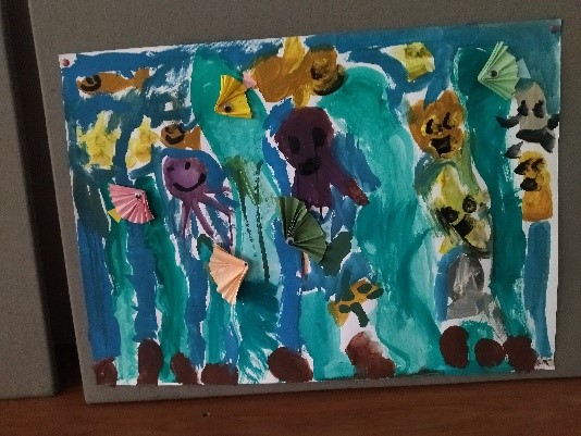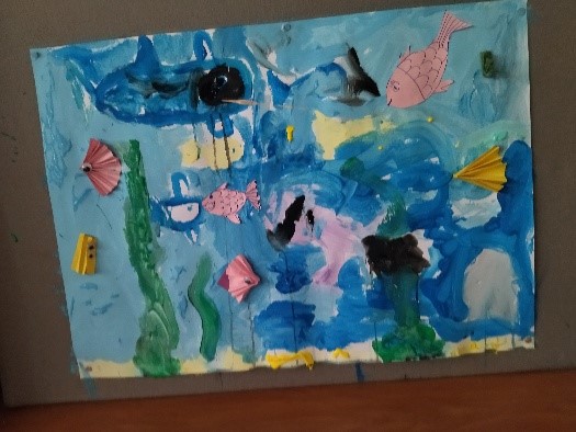 Τα παιδιά χωρίστηκαν σε τρεις ομάδες και έκαναν μία ομαδική ζωγραφιά με τέμπερες με θέμα τη θάλασσα. - Εκδρομή στο μοναστηρι της Παναγίας της Γοργουπηκόου στα Μέγαρα Αττικής