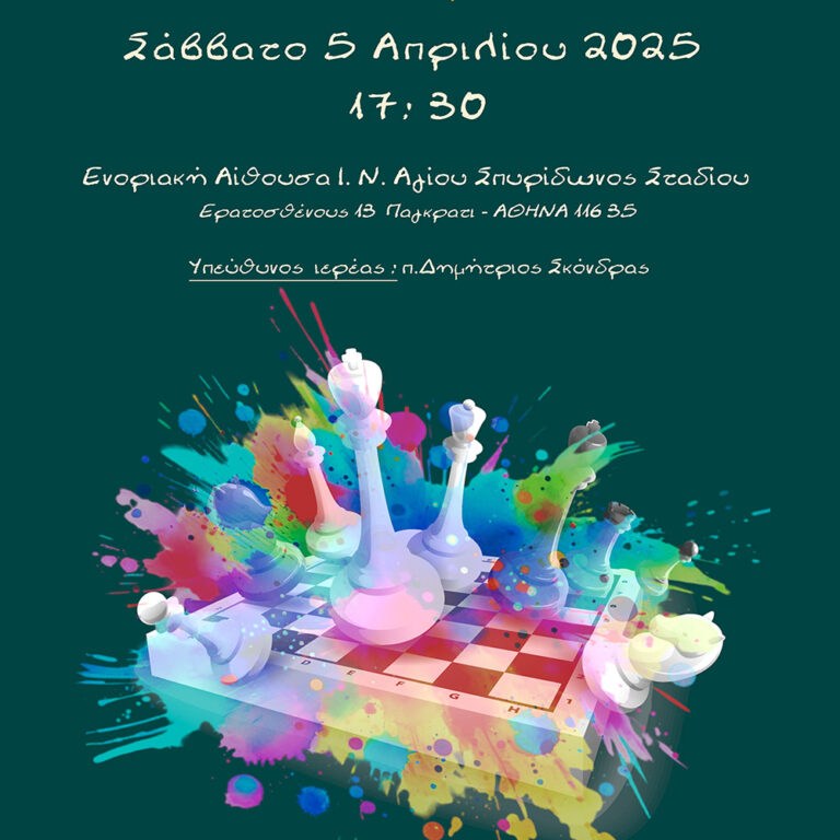 Tο Σάββατο 5 Απριλίου 2025 θα πραγματοποιηθεί το 1ο Παιδικό Τουρνουά Σκάκι στην Ενοριακή αίθουσα του Ιερού μας Ναού.