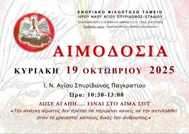 ΑΙΜΟΔΟΣΙΑ – ΚΥΡΙΑΚΗ 19.10.2025 (10:30 – 13:00)